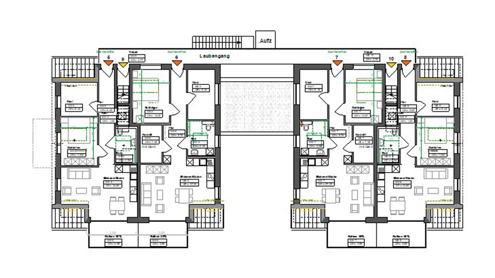 Hofseitiger Neubau von 11 überwiegend barrierefreien Wohneinheiten