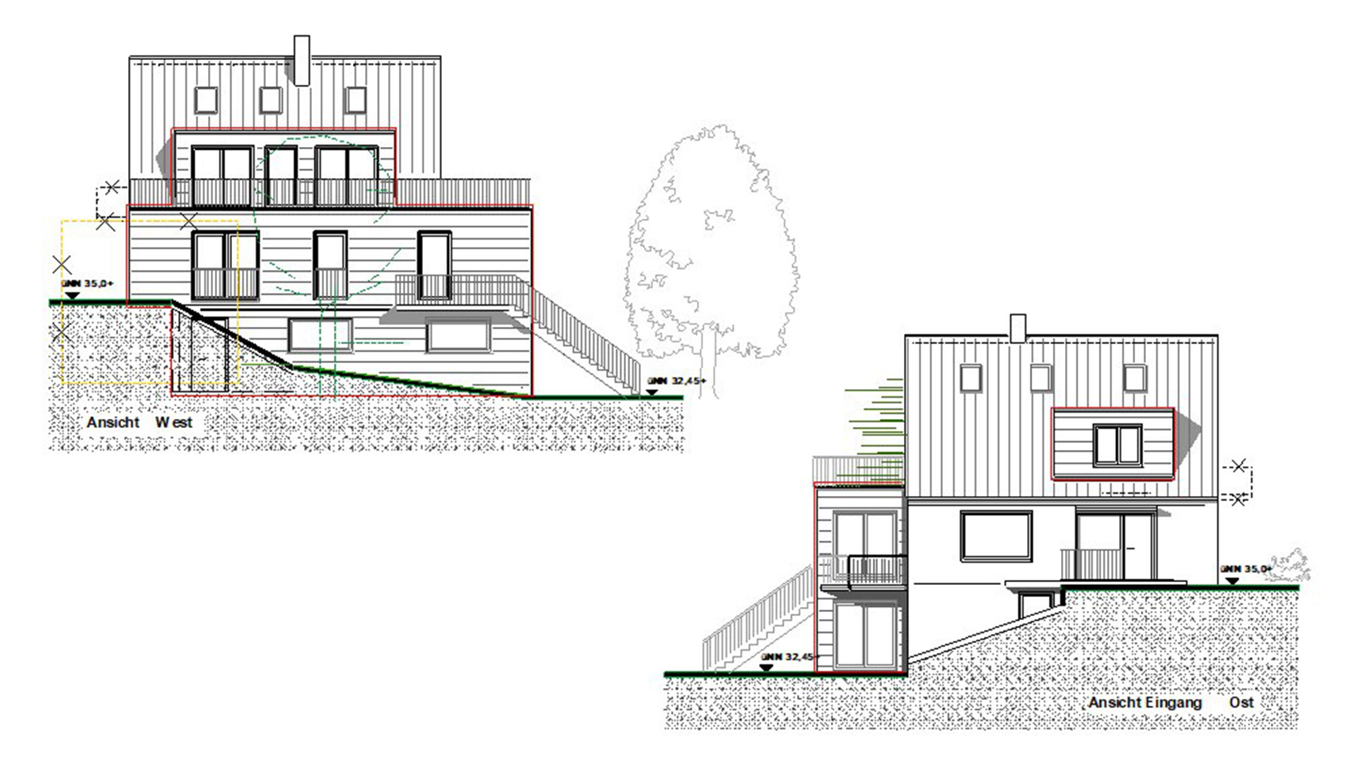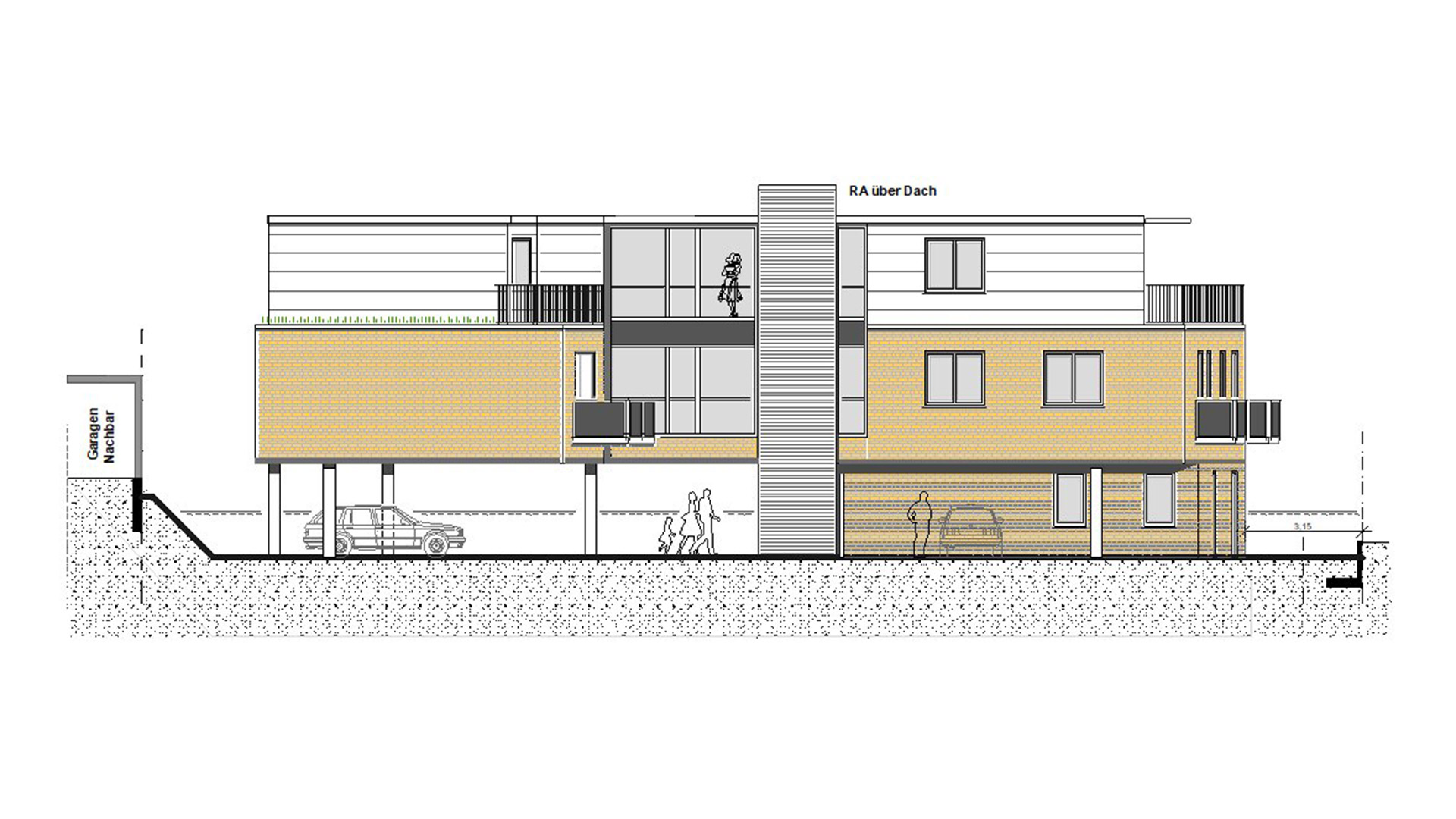 Neubau eines Mehrfamilienhauses auf einem Hanggrundstück mit 4 Wohneinheiten